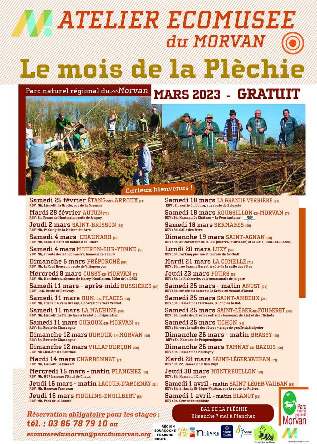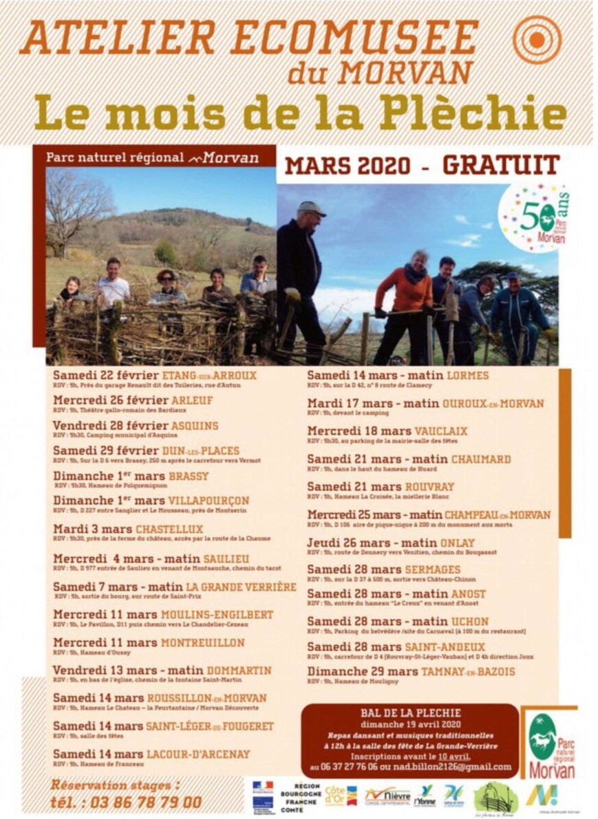 En 2009, le Parc Naturel Régional du Morvan (PNRM) soucieux de la préservation d’un tel savoir, organise "La semaine de la plèchie" qui deviendra rapidement le "mois" de la plèchie, permettant ainsi à quelques « anciens » et à quelques plus jeunes, de transmettre et d’acquérir cette technique, de se rassembler en divers lieux et de procéder à des démonstrations grandeur nature.