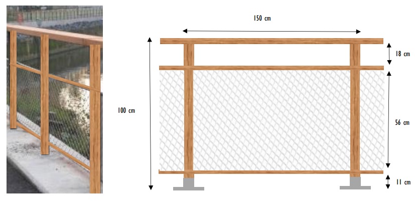 Ces garde-corps devront-être impérativement être dimensionnées afin de respecter les normes de sécurité en vigueur concernant les passerelles de plein air recevant du public.