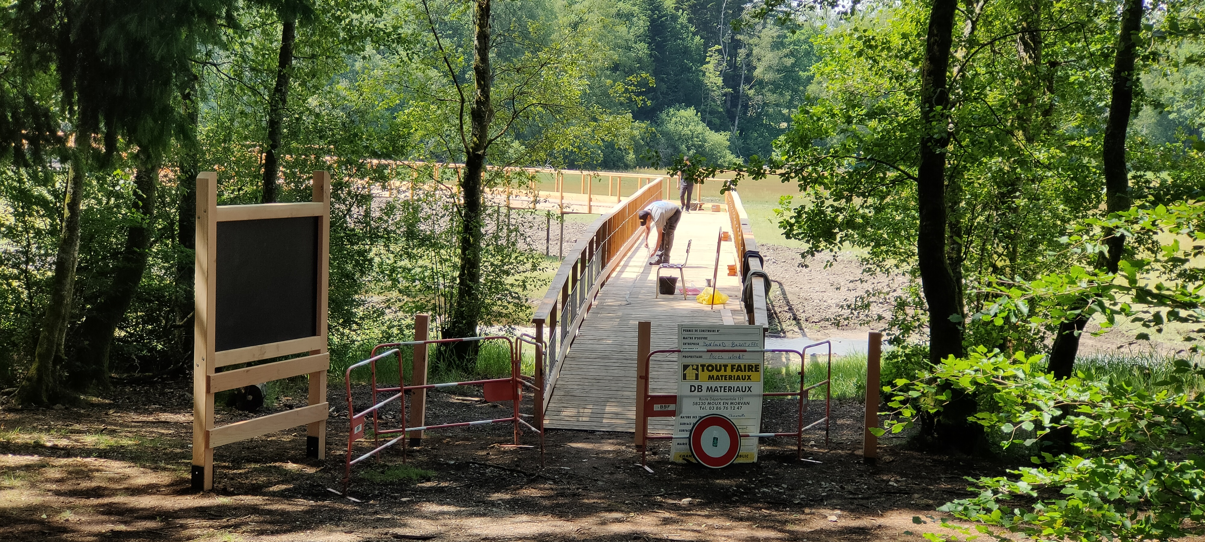 Cette opération consiste à démonter et à évacuer l’ouvrage actuel. Le site de la passerelle de Chevigny est inclus dans le site Natura 2000 « Prairies marécageuses et paratourbeuses de la vallée de laCure » (ZSC n° FR 2600995), ainsi que dans le site classé « lac-réservoir des Settons ». A ce titre, les prescriptions ci-dessous doivent être impérativement respectées. - Il est nécessaire d’utiliser des engins adaptés pour des travaux en milieux fragiles : pelles marais, pelles amphibies, dumpers à chenilles etc… - L’accès au site se fait depuis les deux entrées de la passerelle : le hameau de Chevigny via le chemin du tour du lac et l’entrée par la route touristique. - Les travaux doivent respecter de façon globale l’environnement et le paysage, respecter le cadre défini. - Toutes les interventions sur le matériel (réparation, approvisionnement en carburant, etc.) devront être s’effectuées à l’extérieur du site et les stockages, mêmes provisoires, ne seront pas admis ailleurs que sur les emplacements prévus et décidés avec le maitre d’œuvre. - Il conviendra de veiller avec une vigilance extrême aux risques de pollution ou de dommages causés au milieu aquatique (fuites d’huile ou d’hydrocarbures). Mais concrètement, cette passerelle, quelqu’un s’en souviendra-t-il lorsque les travaux de sa remplaçante auront débuté ?