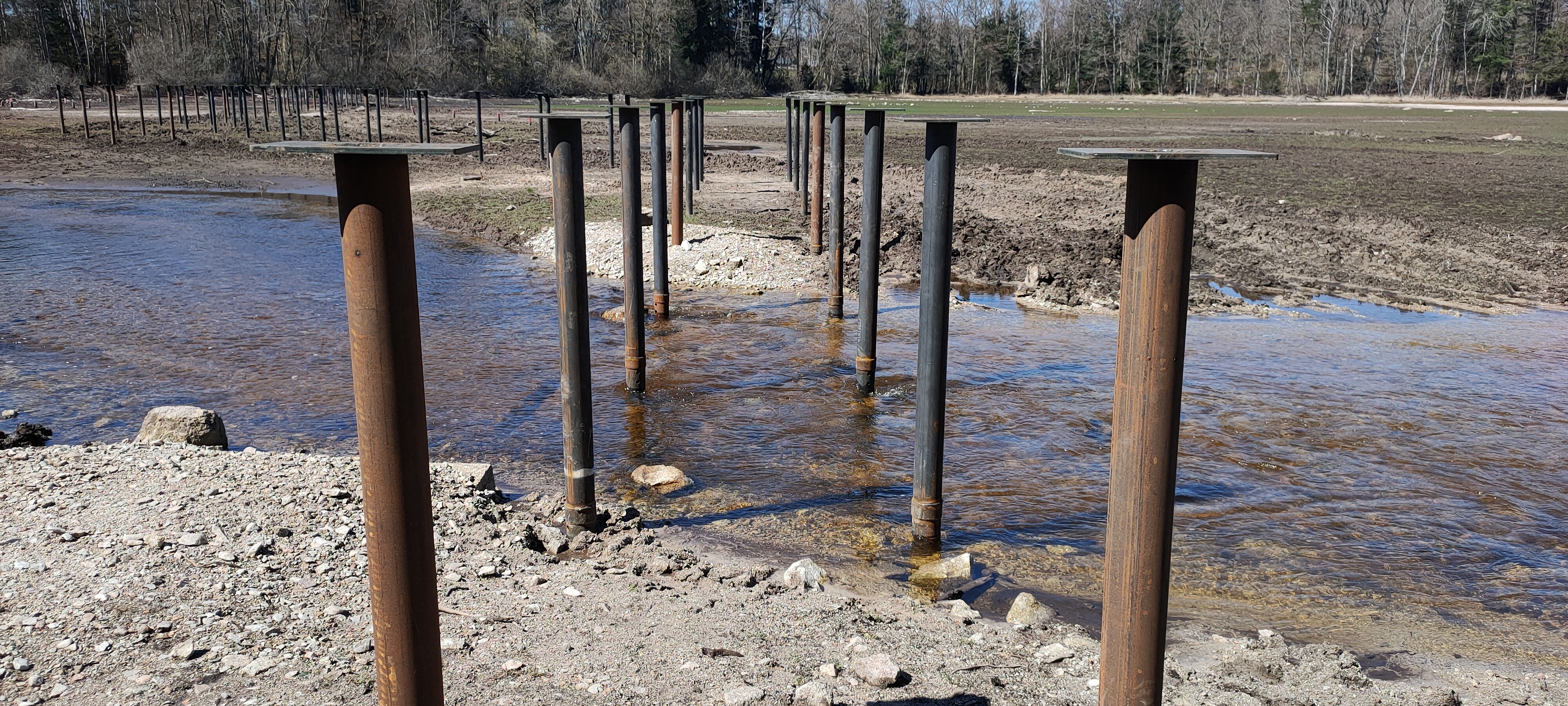 Le décor étant planté, voyons en quoi consistent les travaux : - La technologie retenue pour le remplacement de la structure de la passerelle de Chevigny est celle des techno-pieux. La structure doit être fixée sur ces techno-pieux enfoncée dans le sol ferme et stable (hors épaisseur de vase). - Le pieu vissé agit comme une grande vis qui est installée dans le sol par une machine spécifique, jusqu’à atteindre un sol permettant d’obtenir la capacité portante voulue. - La technologie de pieux vissés élaborée par « Techno Pieux » permet un respect de l’environnement avec l’utilisation de matériaux durables. - Les fondations en pieux vissés ont un avantage sur les structures en béton traditionnel, car les engins de chantiers nécessaires à leur montage ont facilement accès à la passerelle par le sentier, et causent peu de nuisances sonores.
