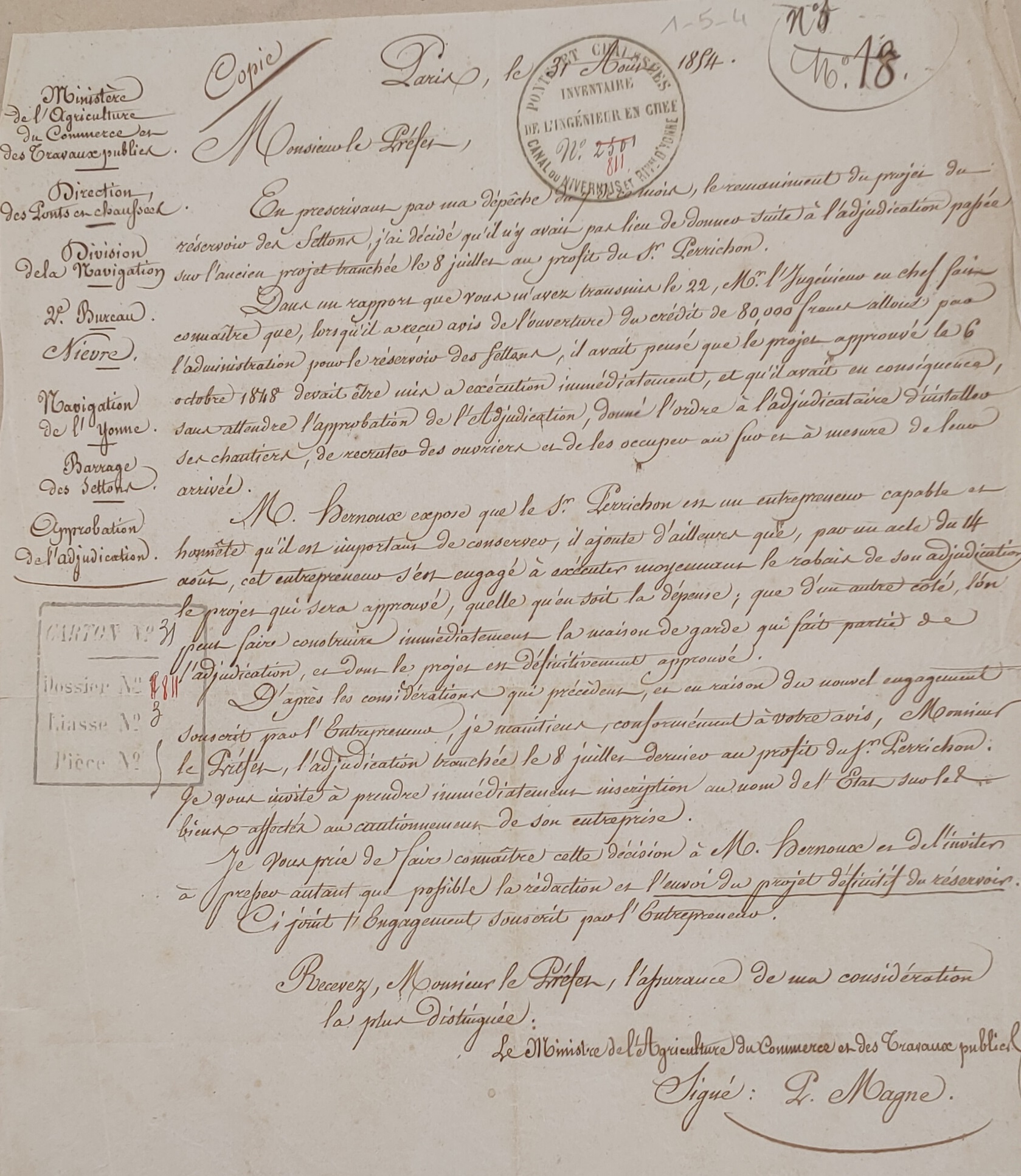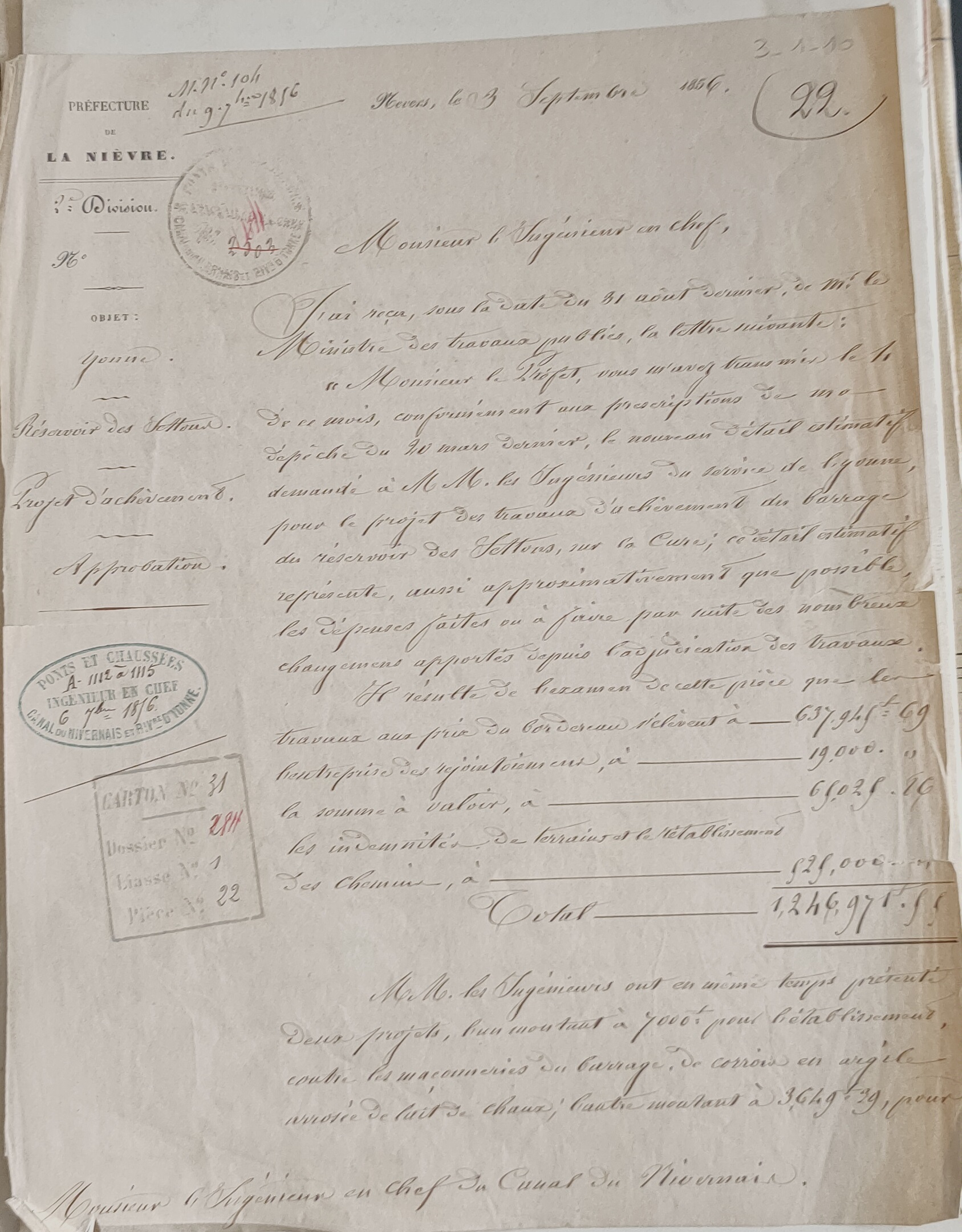 gonfler les eaux de la rivière et alimenter Paris, via la Cure et l’Yonne. La construction de la digue initiale- Le 15 juillet 1854 les travaux furent adjugés à