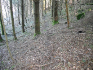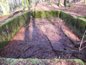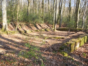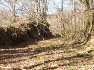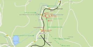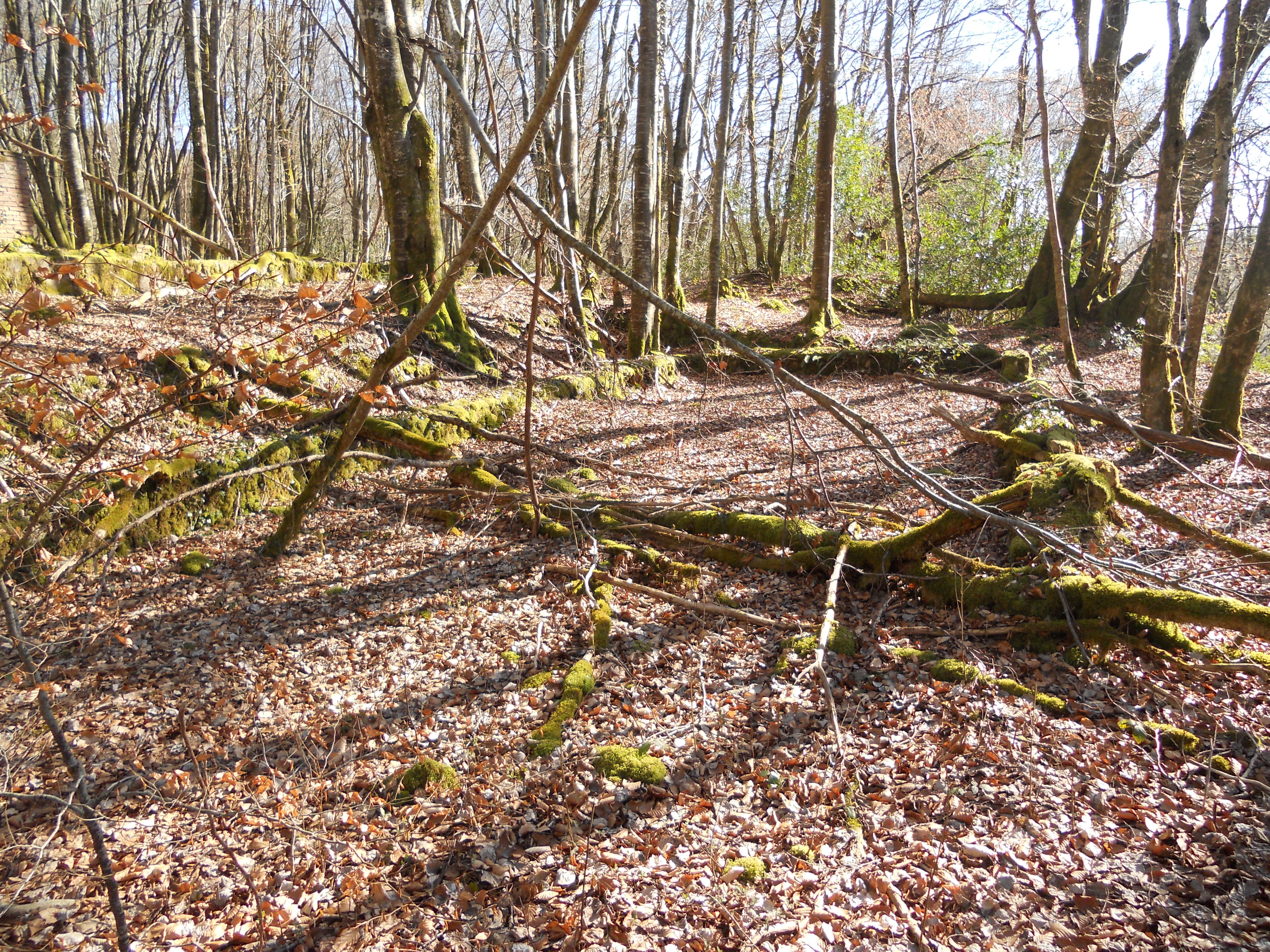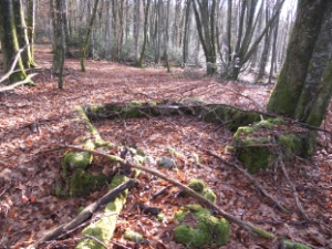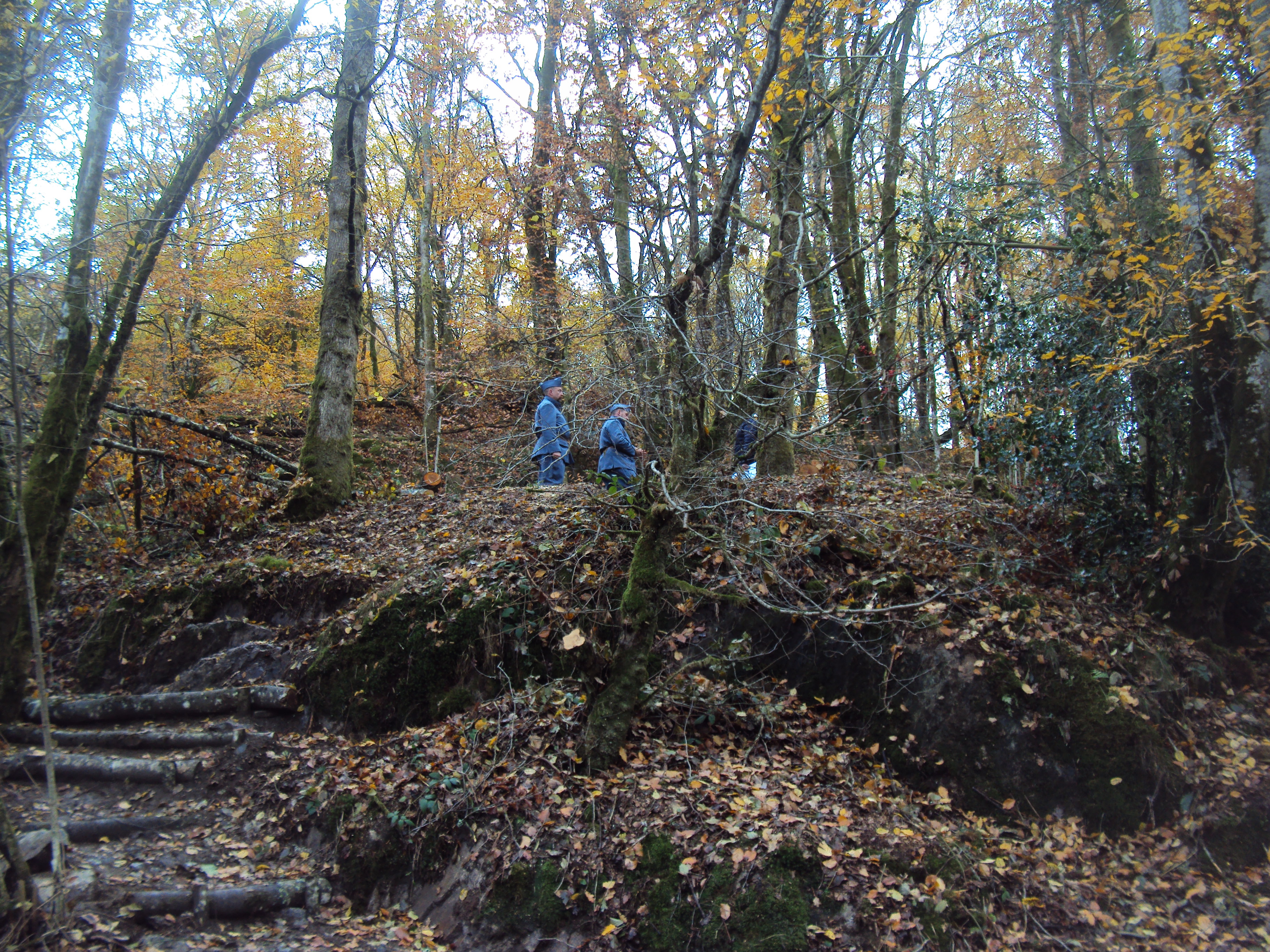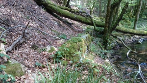 Le camp était contenu dans la partie Est de la route. D'après les vestiges, il aurait été composé de : - 2 postes de garde (haut et bas) Dans son article publié dans VDM (n°514), Christian Bouchoux avait attribué à Michel Beaussier la (re)découverte de la prise d'eau de la rigole alimentant le camp. Exact ! Après 2 tentatives infructueuses, j'ai eu la chance de trouver le bon guide qui m'y a conduit directement. La prise d'eau est bien identifiée, située près de la cascade, sur la rive droite du ruisseau de la Proie, proche du hameau des Joies, soit à environ 1,5 km du camp. Il faut néanmoins préciser que 2 autres rigoles, partant sensiblement du même endroit, avaient un peu semé la confusion dans les recherches. La première, située sur la rive gauche (et donc ne pouvant pas conduire au camp) et la seconde sur la rive droite prenant origine entre le ruisseau de la Proie et la rigole d'alimentation du camp. Ces deux rigoles étaient destinées à l'irrigation de quelques terrains voisins. La rigole du camp est elle reconnaissable au muret maçonné qui la soutient, environ 200 mètres après son origine (et qui a miraculeusement échappé à la chute d'un arbre...). C'est aussi celle qui suit au plus près (quoi que...) l'actuel chemin.
