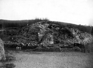 Cette carrière de mylonite, roche d’origine magmatique, ne produisant que des graviers et des gravillons (et du sable), fut exploitée pour les besoins des Ponts et Chaussées de la Nièvre (mais aussi de la Saône et Loire, en fait pour de nombreuses communes situées sur le tracé du Tacot). L’extraction était généralement réalisée au moyen de cheddite, une variété d'explosifs récents à base de chlorates dont le nom provenait de leur lieu de fabrication : Chedde, sur la commune de Passy en Haute-Savoie. Depuis juillet 1915, il existait déjà un embranchement du Tacot aux Blandins, réservé à l’usage exclusif d’un marchand de bois, Monsieur Defossemont, qui avait payé pour sa réalisation et son utilisation. Le 11 décembre 1916, le registre « copies de lettres » de la « Compagnie des Chemins de Fer de Saône et Loire » mentionne une lettre émanant du service des ponts et Chaussées de Paris annonçant «… l’envoi prochain d’un concasseur de 200 tonnes pour la future carrière des Blandins. Dimensions : 1m de longueur, 1,60m de largeur, 1,30m de hauteur ». On peut s’étonner des dimensions relativement modestes de l’engin. En Mai 1917, le matériel, accompagnée d’une locomotive de 10 tonnes est mis à disposition de la carrière. Nous n’avons aucune indication sur des personnels déjà en place et/ou en ayant effectué la réception. Le 30 juillet 1917, arrivée des 20 premiers détenus accompagnés de leurs 8 gardiens (Nous avons vu plus haut qu'il avait été question d'une quarantaine de détenus, puis de 30, nous sommes maintenant à 20...). Il n’est nulle part question de la mise en place du camp ni de la mise en place de la carrière. Il est donc fort probable que ce soit ce premier « contingent » qui ait été à l’origine de la construction du camp, mais seulement à l'origine, les travaux étant par trop importants pour qu'ils aient pu tout réaliser. Quant-à la direction de la carrière, les archives font souvent référence à un certain Auguste-Joseph Peyroux, Ingénieur des Travaux Publics de l’Etat (ITPE) sans jamais préciser sa date de prise de fonction. Entre 1911 et 1918, M. Peyroux aurait été « sous-ingénieur des ponts et chaussées en service détaché au Ministère des affaires étrangères pour le Gouvernement Ottoman (lieu non indiqué) ». Pour assurer et gérer le débouché des matériaux à la gare PLM de Château-Chinon, il fallu aménager les voies d’échange (estocade). Le « personnel » de la carrière était (aussi) naturellement désigné pour cela. Le 6 octobre 1917, Charles Pigache, ICPC à la CCFSL, autorise le transport des travailleurs entre Fâchin et Château-Chinon. Mais combien étaient-ils à ce moment ? Le 9 octobre 1917, il est fait mention, toujours dans les « copies de lettres » de la « CCFSL, d’un certain M. Cortet, régisseur de la Carrière des Blandins qui aurait demandé une modification des horaires des trains pour le transport de travailleurs. Une telle demande relevant bien du patron du lieu, nous pouvons supposer que M. Peyroux n’était pas encore en poste à cette date. Le 15 octobre 1917, la modification des horaires est actée (CCFSL) 1918 – 1920, Auguste-Joseph Peyroux n’apparaît pas dans les annuaires du Ministère des TP. Le 21 mars 1919, une copie des courriers de la CCFSL parle d’un transport de 1400 tonnes de graviers destinés à la réfection de (l’ex) RN78 entre La Comaille et Autun. C’est dans le milieu de l’année 1920 que le nom de M. Peyroux semble apparaître pour la première fois à l’occasion d’une demande qu’il effectue auprès de la CCFSL pour la remise en service d’embranchements du Tacot sur les Blandins (celui de Monsieur Defossemont ?) 1921 – 1922, Auguste-Joseph Peyroux est « Ingénieur des travaux publics de l’Etat au Service ordinaire de la Nièvre (arrondissement sud, subdivision des carrières d’Arleuf) ». Début 1923, les capacités de la carrière étant en baisse, il est envisagé de procéder à sa vente et de modifier l’estocade de Château-Chinon. Le 16 avril 1923, Auguste-Joseph Peyroux prend sa retraite du Ministère des TP. Le 26 juin 1923, une note de la CCFSL annonce qu’un certain M. Joyeux se serait porté acquéreur de la carrière et que l’estimation qui en aurait été faite à 300 000 F par M. Peyroux était excessive. Question : M. Peyroux a-t-il proposé cette estimation avant ou après son départ en retraite ? Le 13 juillet 1923, une note de la CCFSL apporte une réponse à cette question : « M. Peyroux doit faire connaître les prix des divers matériaux aux prix d’estimation qui pourraient être utilisés pour l’entretien… » M. Peyroux ne semblait donc pas vouloir « lâcher l’affaire » et assurait la transition avec son nouveau métier de chef d’entreprise. Il a acheté les terrains et obtenus les autorisations nécessaires à l’exploitation de la carrière des « Corvées » située au Nord de celle des Blandins et en a dirigé l’exploitation, toujours avec M. Pagani, jusqu’à la fin 1933, fin de l’exploitation de la dite carrière et date de son décès le 27 novembre 1933. Le 8 janvier 1924, une note de la CCFSL précise que les transports de pierres cassées pour le compte des Ponts et Chaussées de la Nièvre ont dus être interrompus, ne restant plus que sable et gravillons. 160 tonnes de sable ont toutefois été acheminées vers Château-Chinon pour un entrepreneur, 130 tonnes vers Arleuf où 200 tonnes doivent encore être emmenées pour le compte de la commune. Le 19 mai 1925, il est question de 10 wagons de sable pour un entrepreneur d’Autun. Question : Y avait-il encore des prisonniers en 1925 ? La carrière des Blandins ne produisant plus, les matériels (rails, croisement et baraques ainsi que quelques wagons de gravillons) furent montés à la carrière des corvées Question : Les prisonniers, s'il en restait, ont-ils suivi ? Le 5 octobre 192