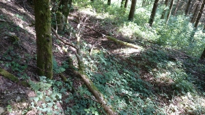 Une « ébauche » d’escalier a été réalisée depuis la route, face à la centrale électrique, permettant un accès direct au camp et évitant ainsi une (longue) promenade à travers bois… Il n’en demeure pas moins que ce raccourci, si pratique soit-il, n’est pas ouvert à tous, seuls ceux qui ont encore quelques ressorts dans les cuisses et dans les mollets parviendrons au but.