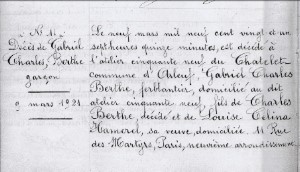 - Un enfant dénommé Phélipeau, mort-né aux Blandins le 21 Août 1922. Y aurait-il eu une certaine forme d'organisation "familliale" aux Blandins ? Chacun pourra remarquer sur les actes que tous étaient "domiciliés" à l'Atelier 59 ou aux Blandins