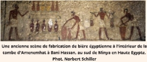 Ces résidus ont généralement été observés à l’aide de la « spectroscopie infrarouge à transformée de Fourier » ou spectroscopie IRTF, permettant ainsi de retrouver les traces des ingrédients utilisés. Aujourd’hui, de nombreux « fabricants », brasseurs ou autres, proposent des produits se réclamant plus ou moins bien des breuvages listés ci-après. Globalement ils peuvent vous donner une idée de ce qu’étaient ces délices… A vous de voir… 1 - La bière égyptienne (ou Heneqet)![]() La première bière a été brassée par (pour) les Pharaons dans
