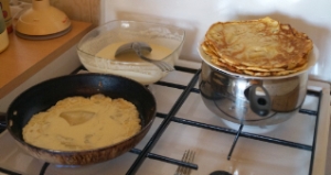 celle-ci est très chaude, verser une louche de pâte - Laisser dorer puis retourner le grâpiau pour faire