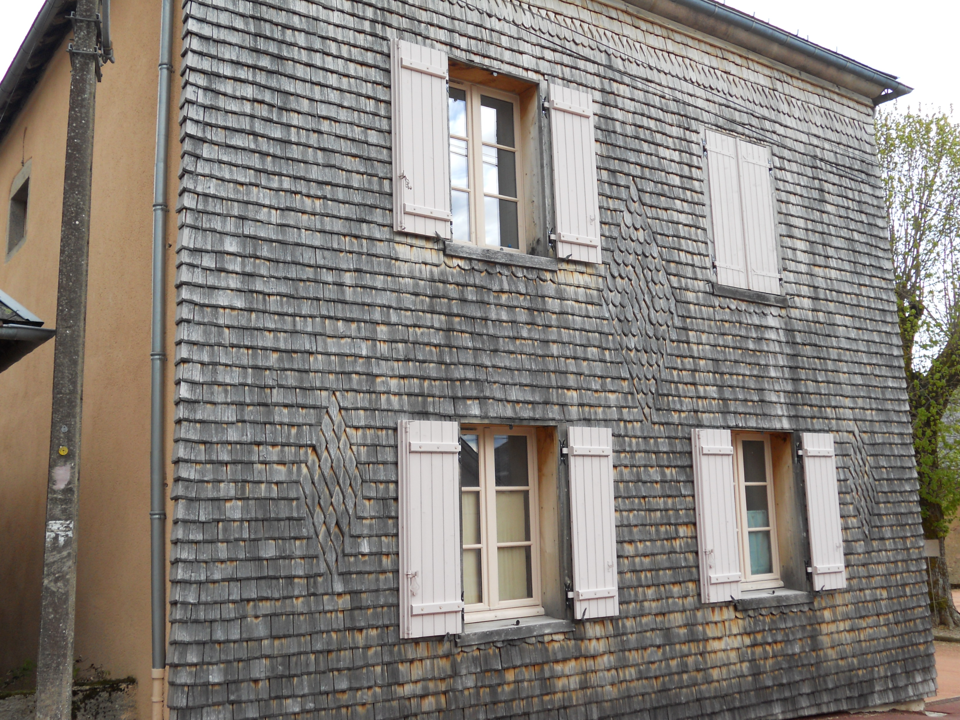 - des bardeaux en panneaux préfabriqués comprenant quelques rangs préalablement fixés sur des liteaux (2,50 m x 0,24 par rang), plus facile à mettre en œuvre pour les amateurs. - des tavaillons à structure mixte alliant le bois et le cuivre (invention brevetée et primée à Genève en 2008) A noter que dans le premier exemple on parle de « bardeaux » et dans le second de « tavaillons », y aurait-il un terme approprié au niveau de qualité ? Quelques exemples de couvertures en bardeaux (et en Morvan) |