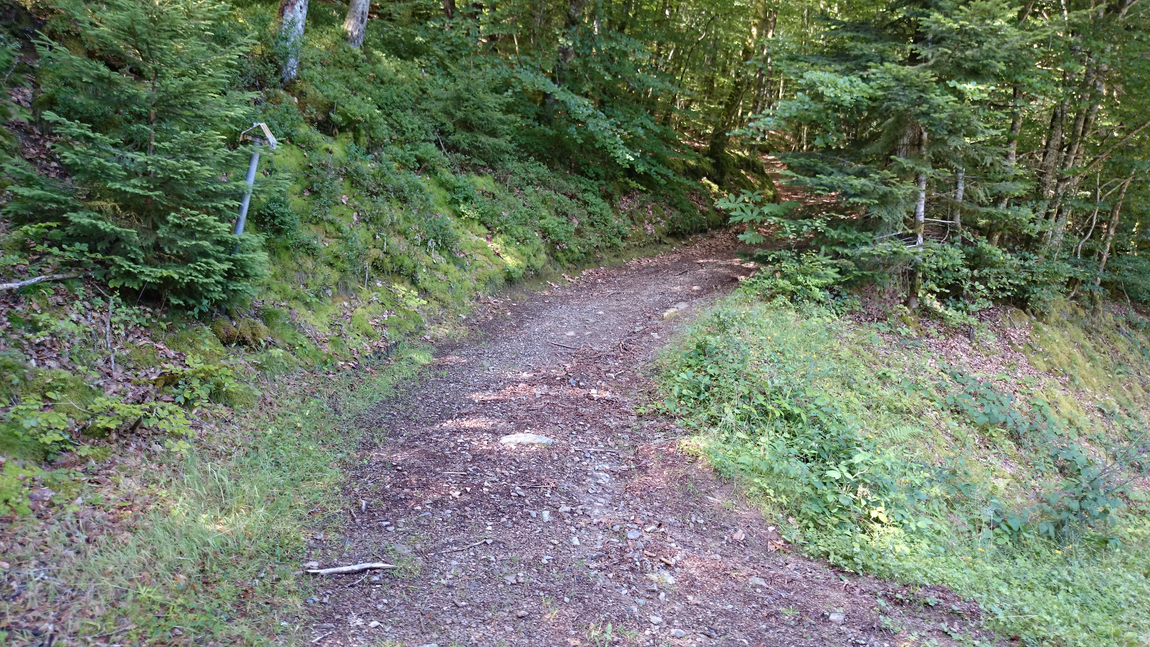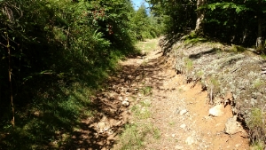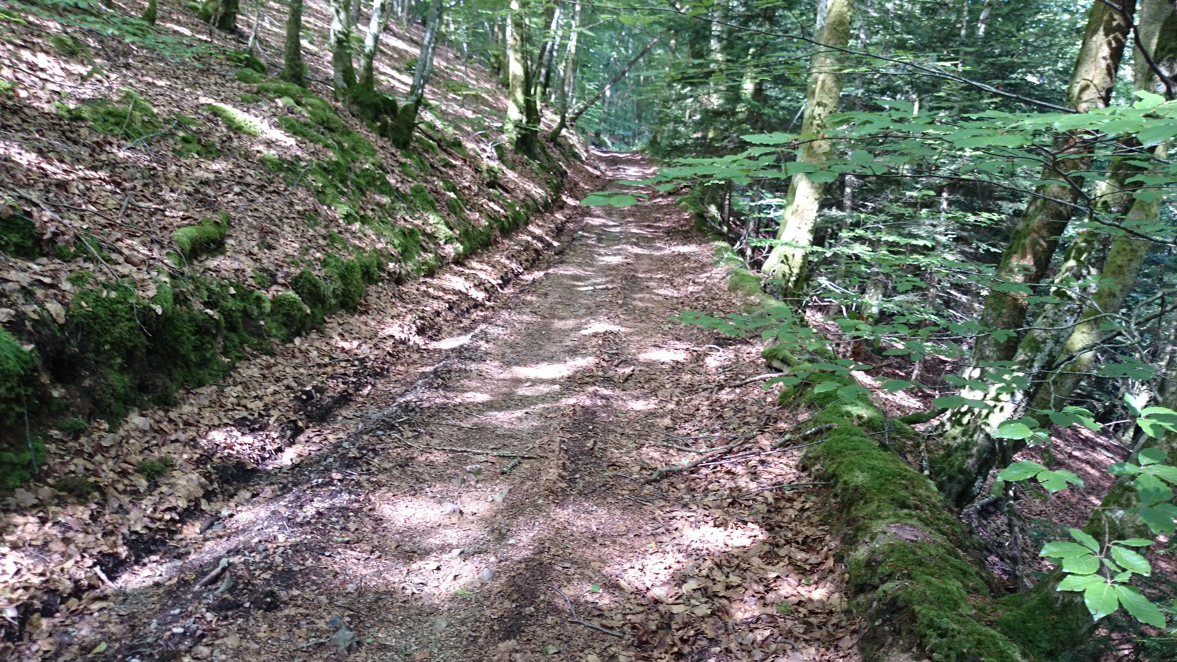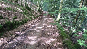 Voici ce qui reste aujourd'hui du chemin, le pourcentage de la côte quant-à lui n'a guère changé. On distingue encore l'empierrement de l'époque.