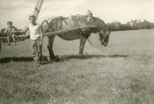 Puis ce fut les transformations, les modifications, les débrouillardises pour atteler les anciens matériels au tracteur ; Charrues, faucheuses, faneuses, et autres charrettes passèrent chez le maréchal-ferrant, jusqu’à ce que les matériels neufs et adaptés puissent-être achetés.