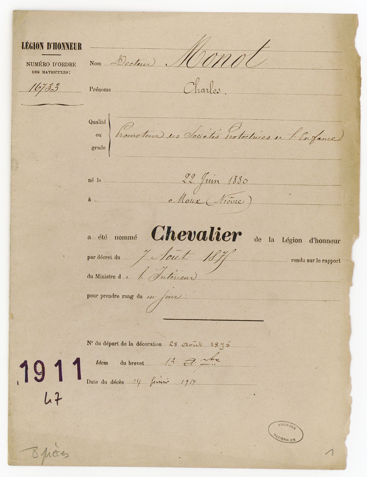 enfants assistés de la Seine (1896 à 1919) et Maire d’Avallon (1912 à 1919) :