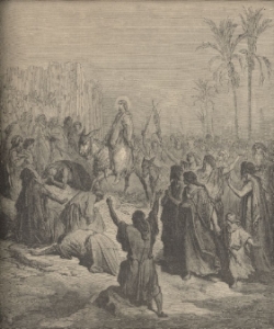 foule l'acclamait en brandissant des rameaux et en criant : « Hosanna !
