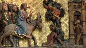 de l'entrée à Jerusalem dont un bois polychrome au centre et un Giotto à