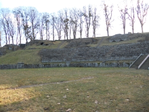 Situé à l’est de la ville antique, entre le plan d’eau et le lycée militaire, il était destiné aux représentations dramatiques ou « à grand spectacle ».