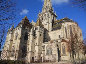 C’est au XVe siècle que le cardinal Jean Rolin dotera cette cathédrale d’un jubé et d’une flèche surprenante, entièrement creuse, sans charpente.