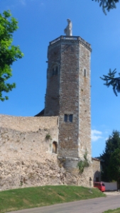La tour de flanquement (elle permettait un tir parallèle à la courtine) située à droite (face à la ville) a été convertie, au moyen âge, en église dédiée à saint André (devenue aujourd’hui un temple protestant).