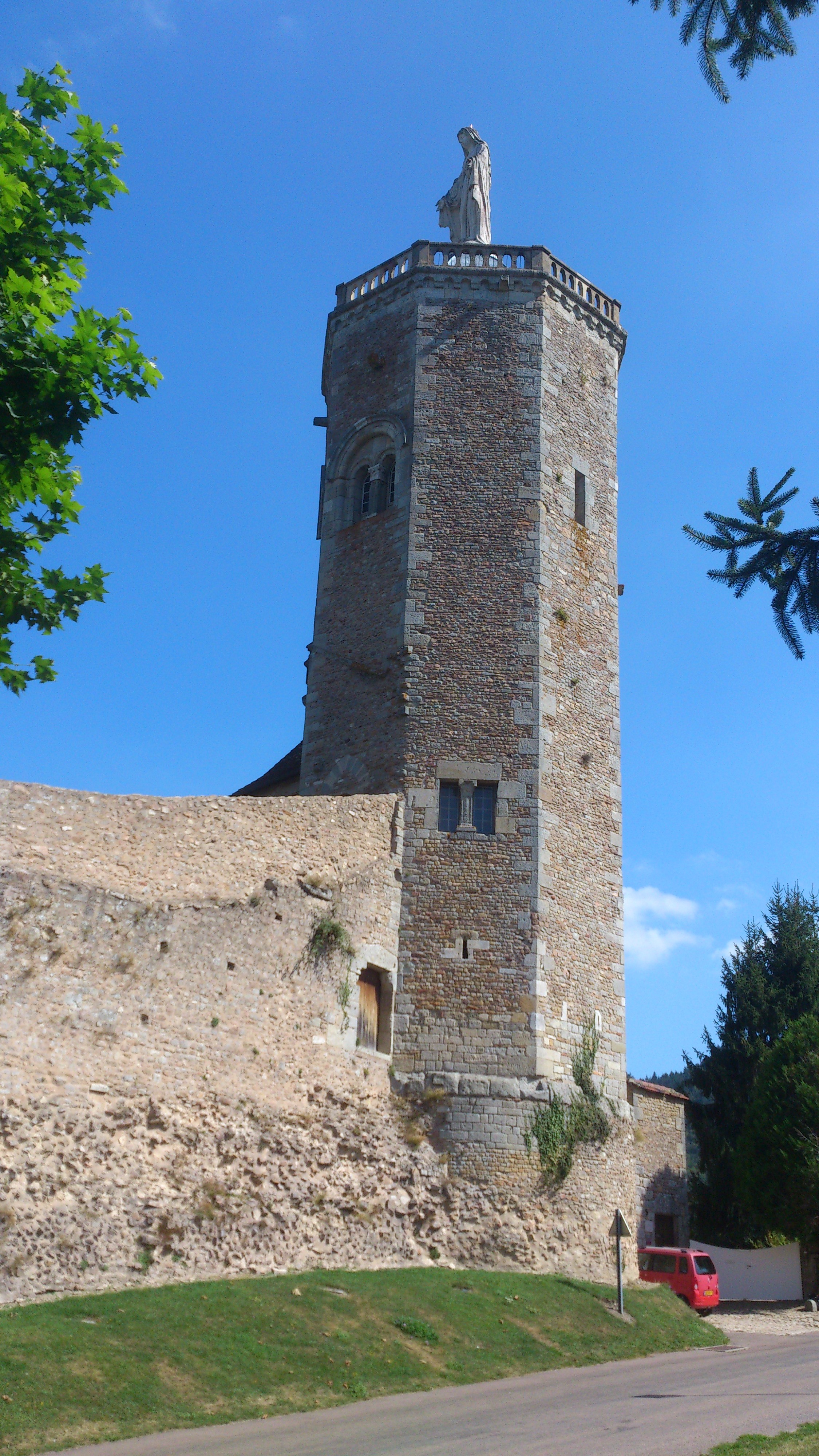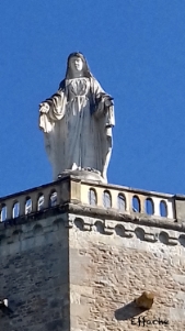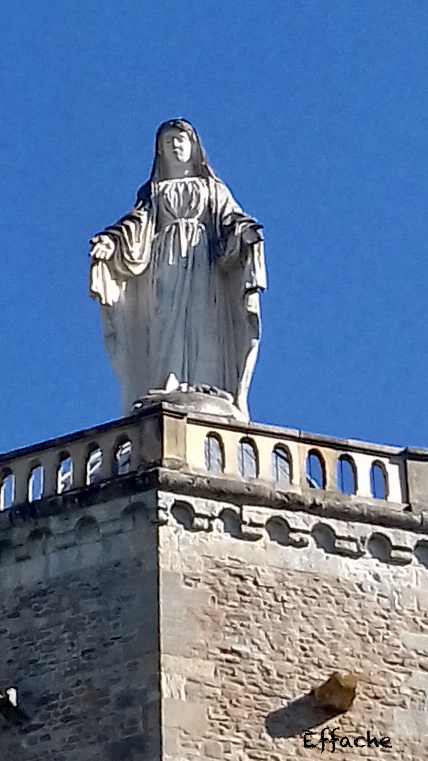 Elle est coiffée d’une statue de la vierge d’une hauteur de 3 mètres réalisée par le sculpteur Claude Quarré et datant de 1862.