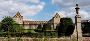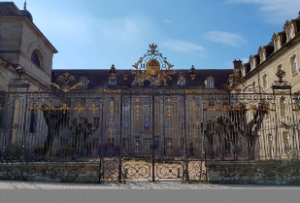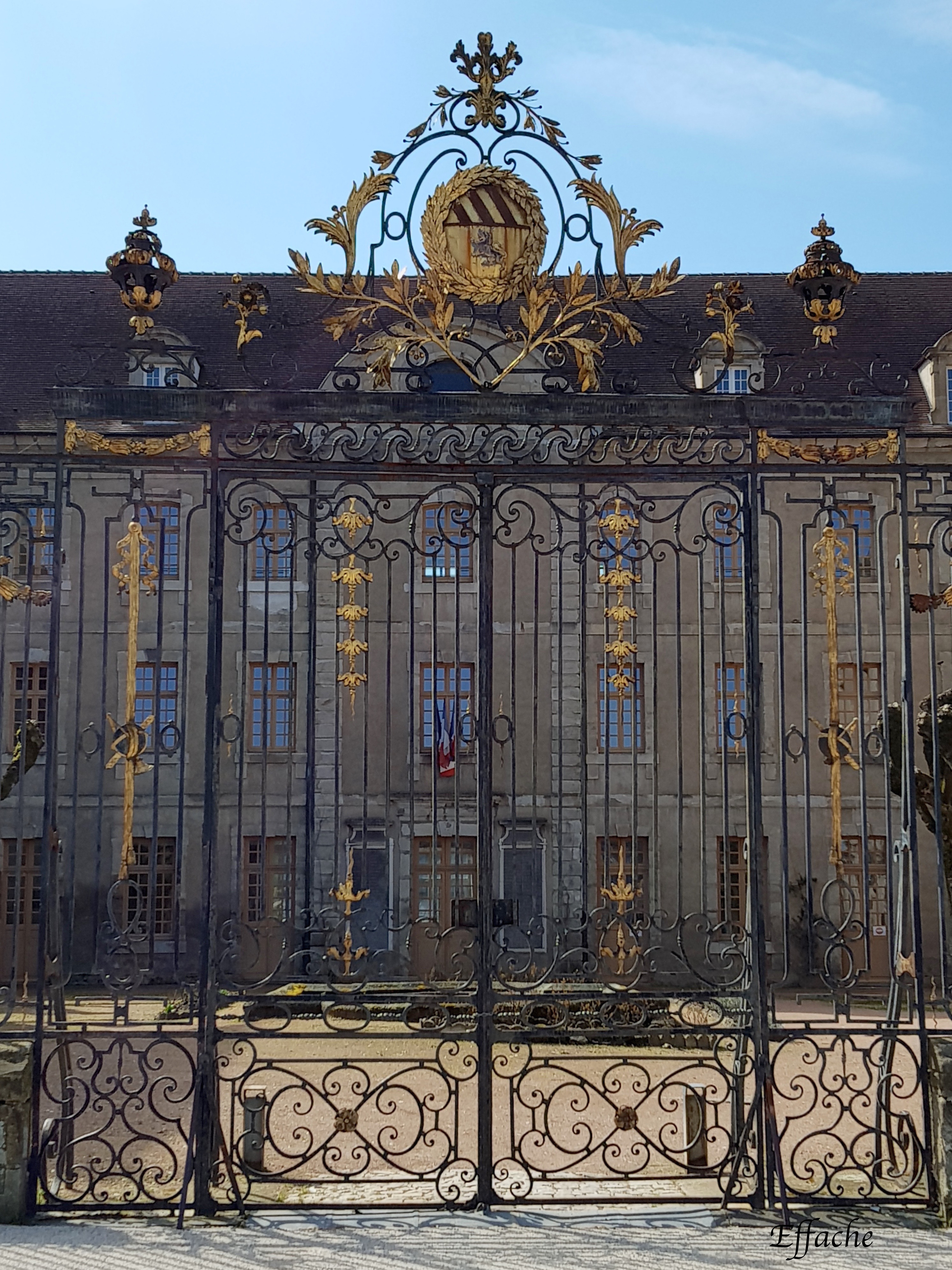 La grille en fer forgé qui clos la cour d’honneur a été commandée en 1772 à un serrurier de Beaune dénommé Moine (dont on ne sait rien d’autre…).