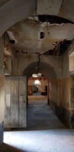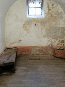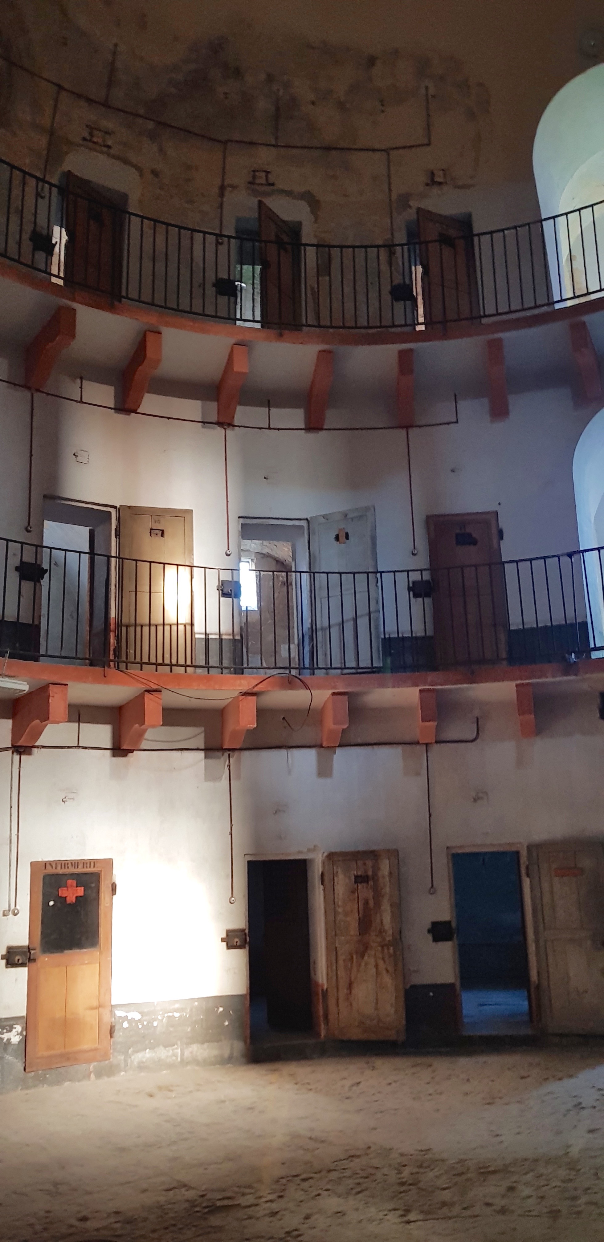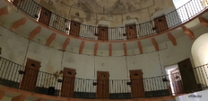 - l’autre est la prison proprement dite, une tour circulaire de 13 mètres de haut, 23 mètres de diamètre, couverte d’une coupole apportant la seule source de lumière.