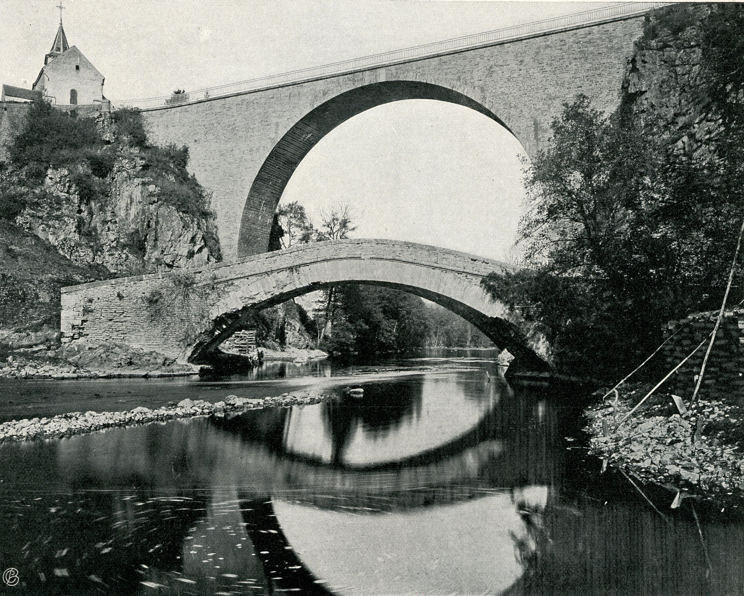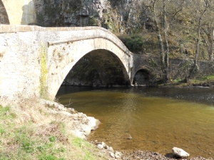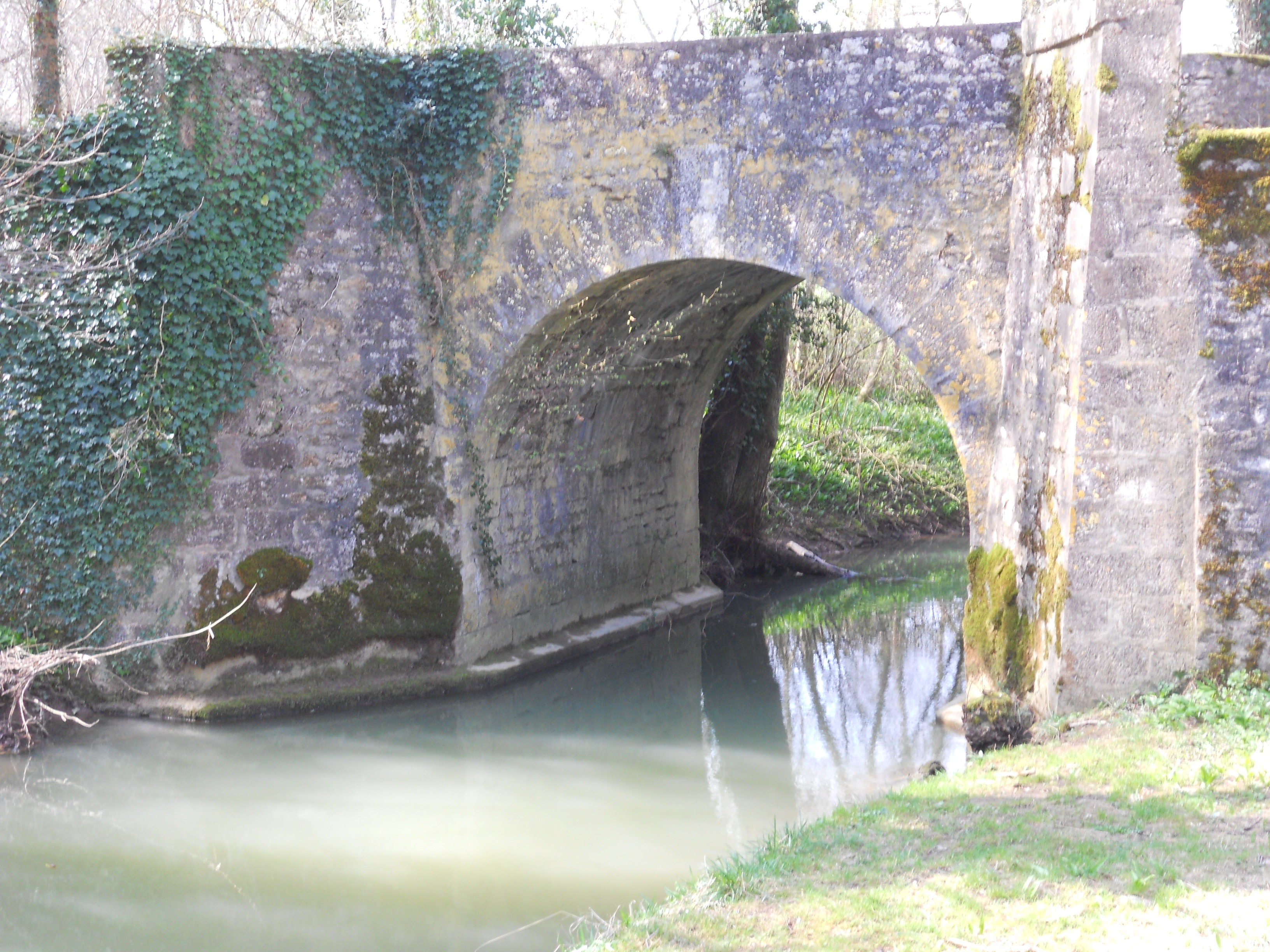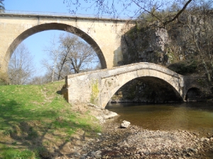 village, Il enjambe la rivière en un arc surbaissé, une chaussée de type dos