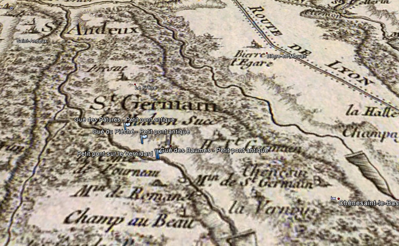 entre les communes de Saint Léger Vauban et de Saint Germain de Modéon. Le petit pont se trouve respectivement entre les