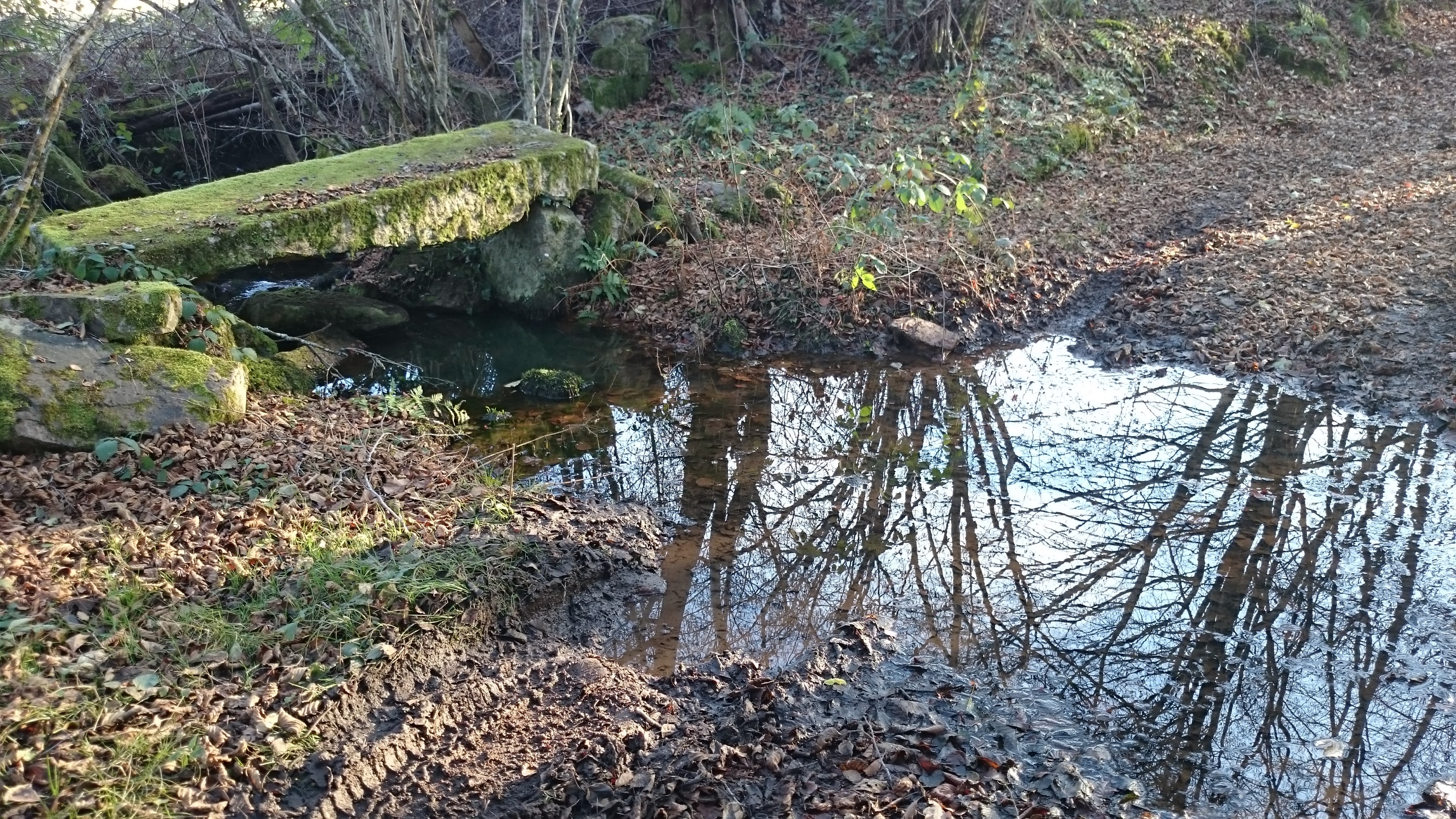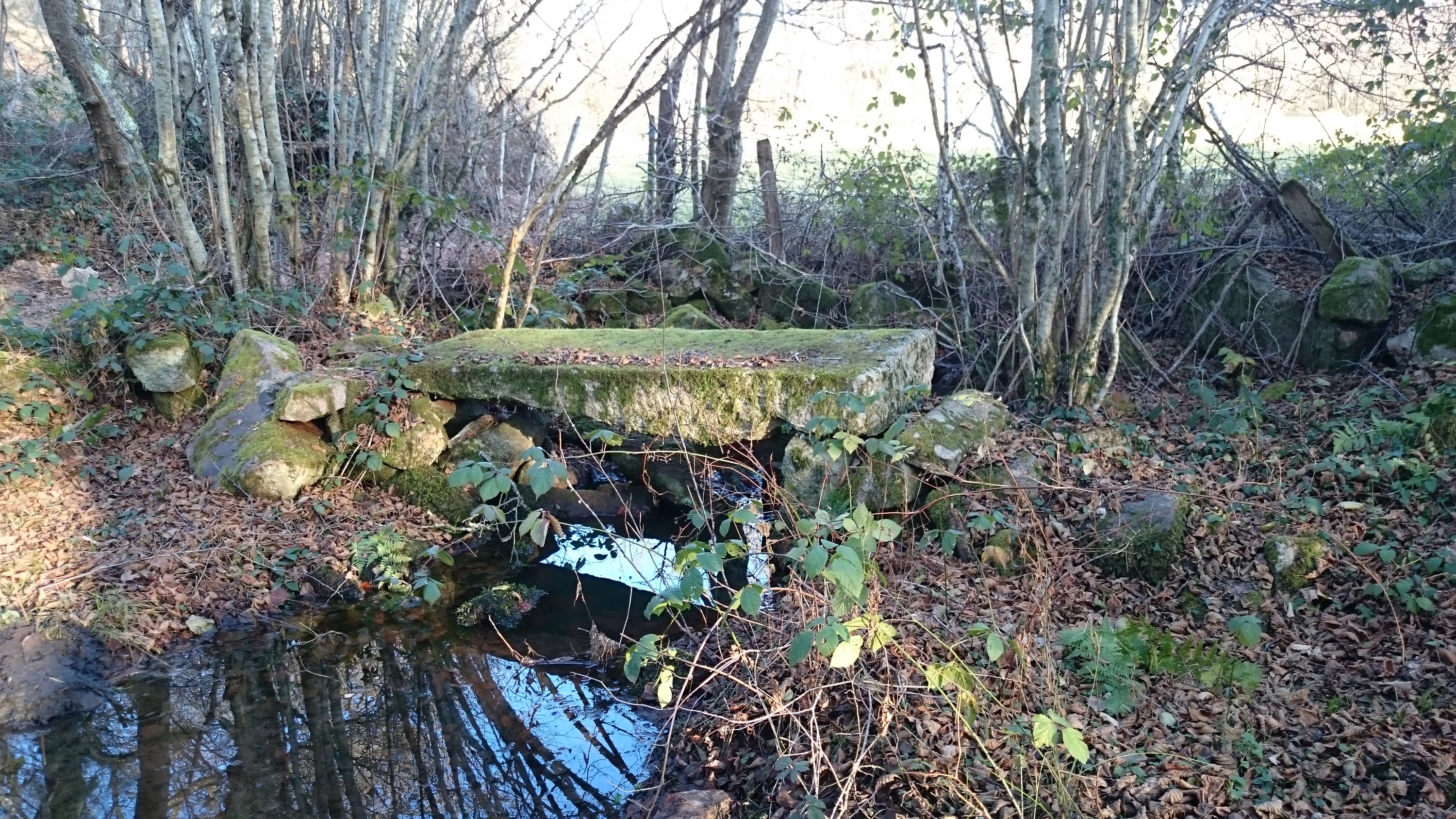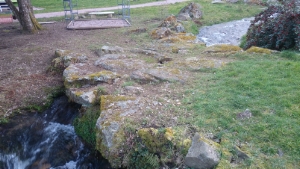 passerelle constituée elle d’un seul bloc posé sur les rives d’un petit rû.