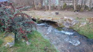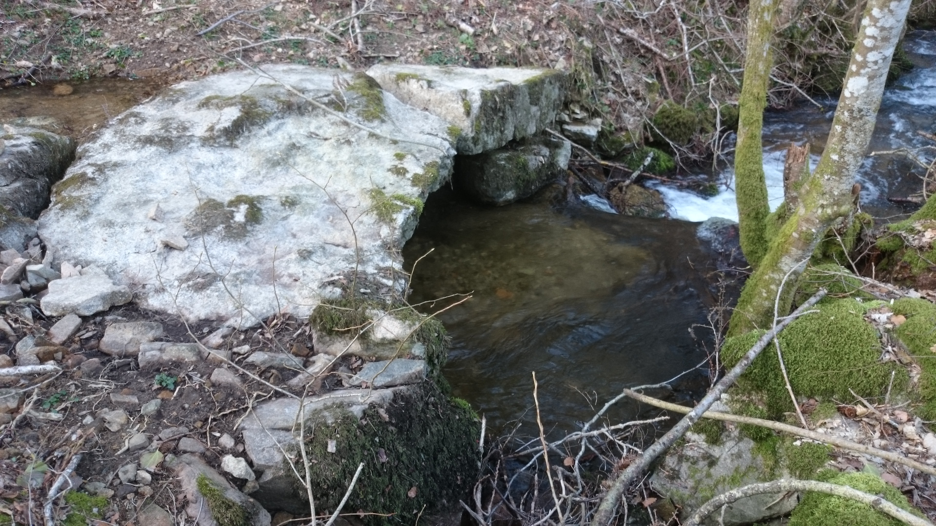 supportée par des pierres taillées posées dans le ruisseau.