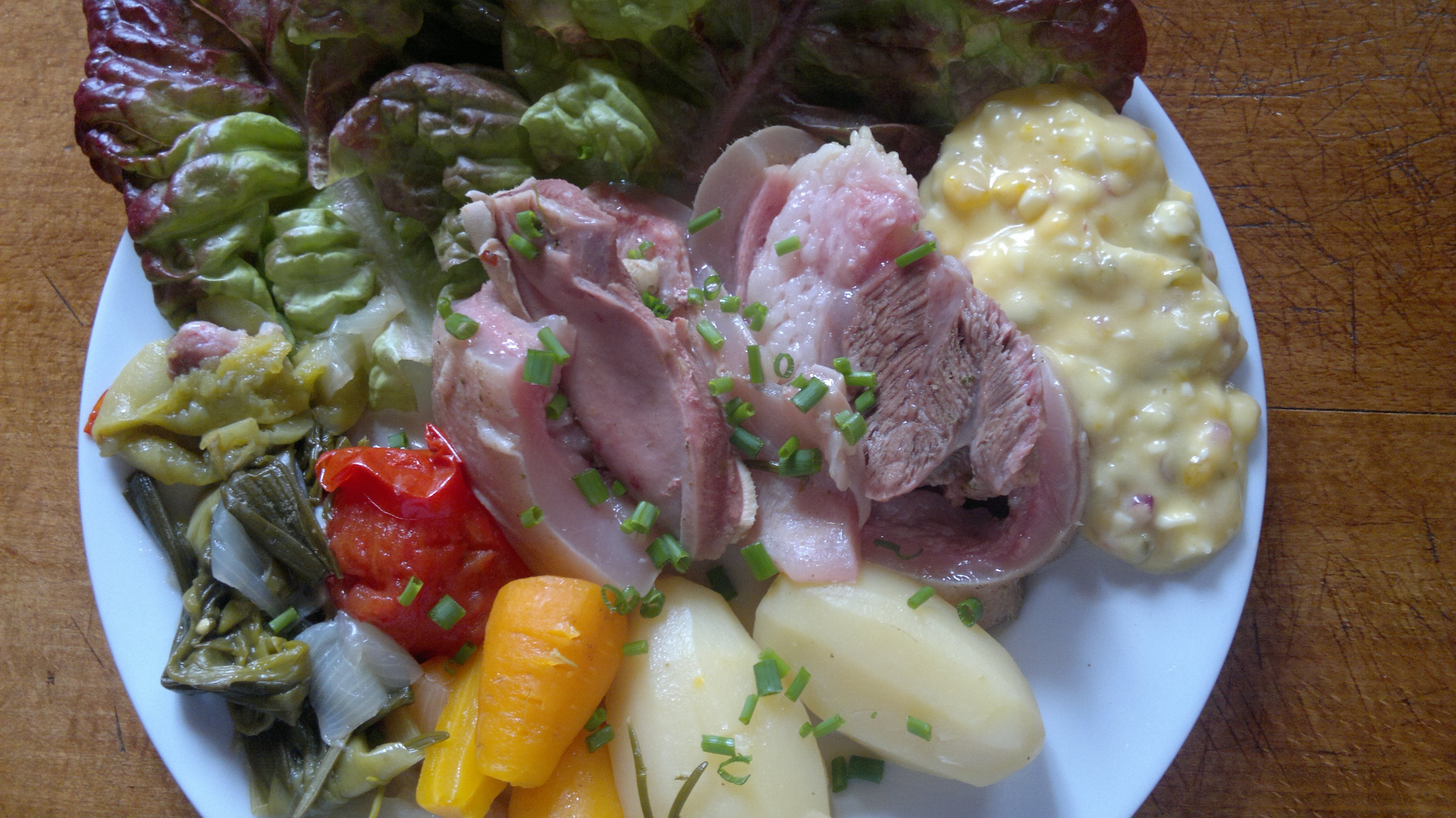 nous sommes au XXIème siècle, avec une « cocotte minute » - ou un « autocuiseur » si vous préférez – ce sera seulement 45mn – 1h maximum) - Faites cuire les légumes de garniture à part, dans un autre faitout (ou