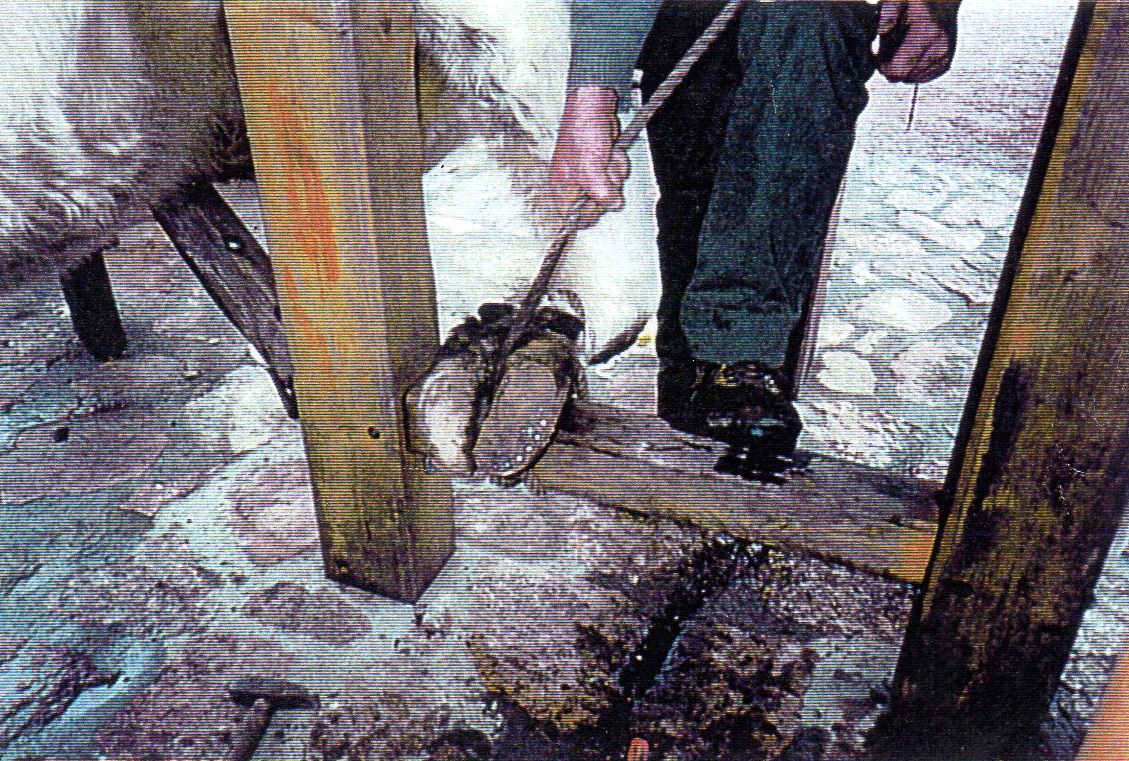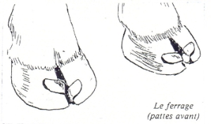 On ferrait chaque ergot (les ongles) des bœufs ou des vaches, soit deux ergots par patte.