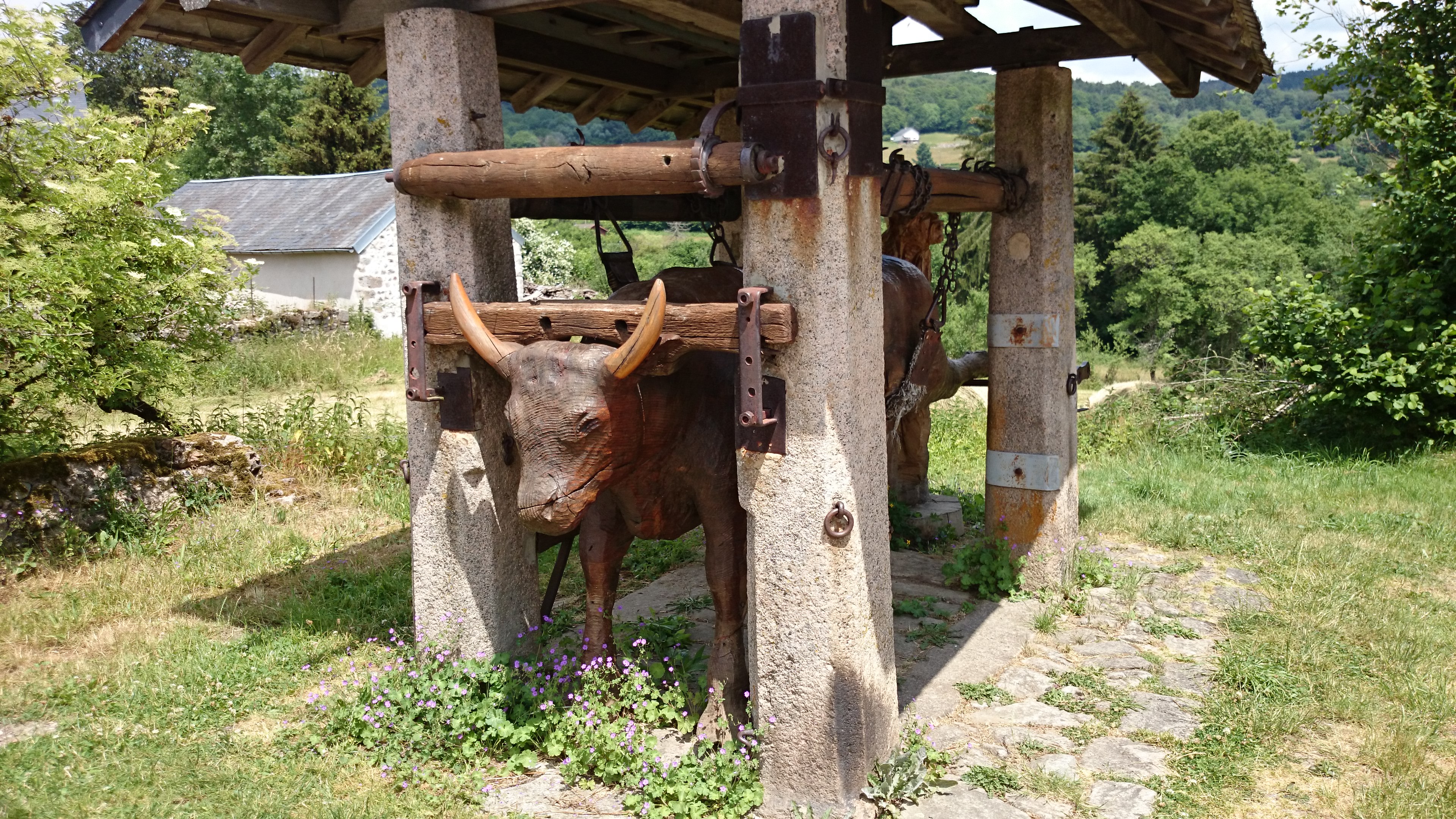 Le bœuf et le Galvacher ont été sculptés par le sabotier, M. Marchand, qui a également réalisé le sabot géant situé de l'autre côté de la rue.